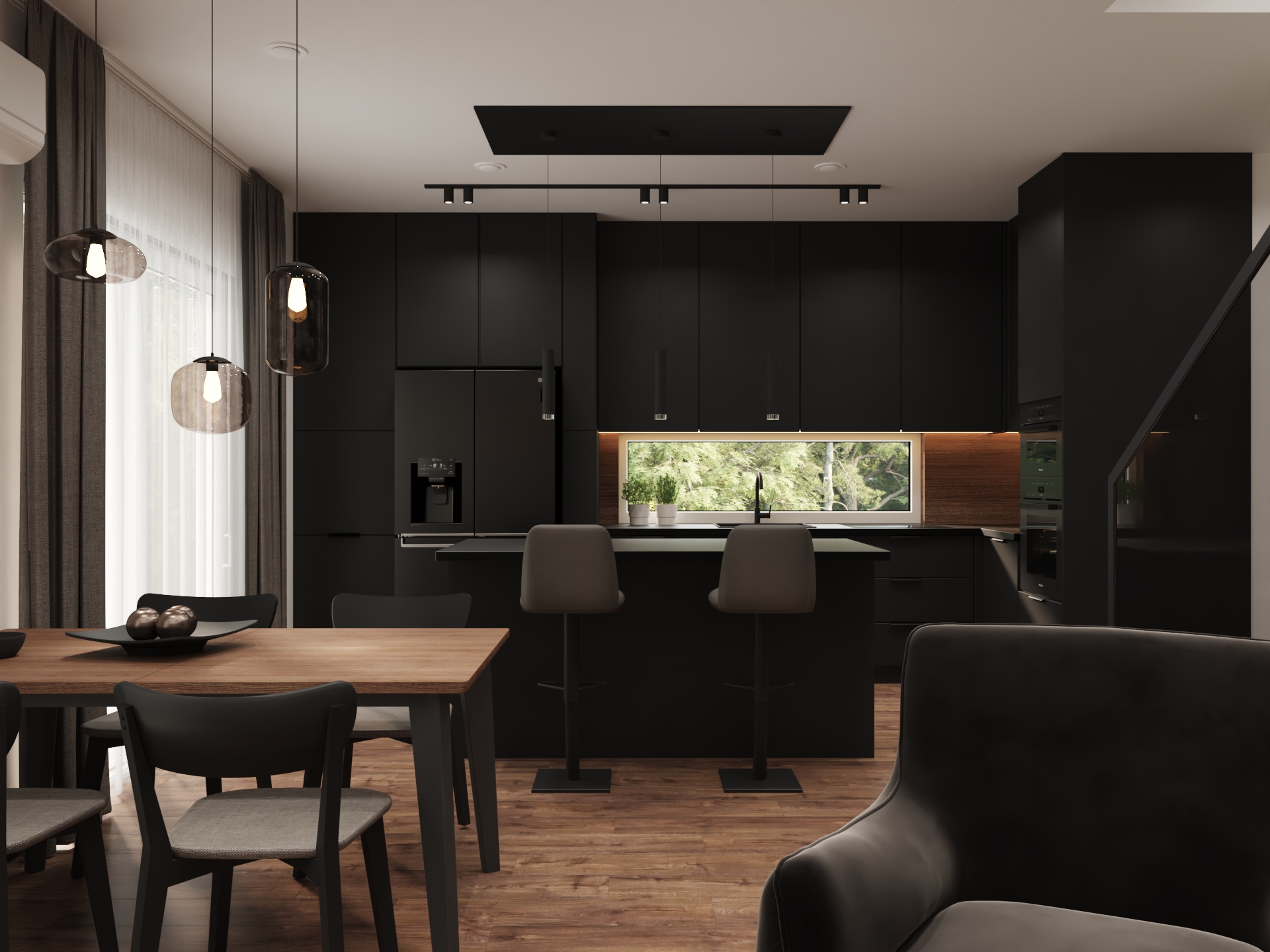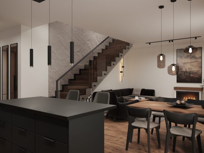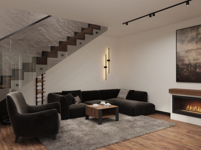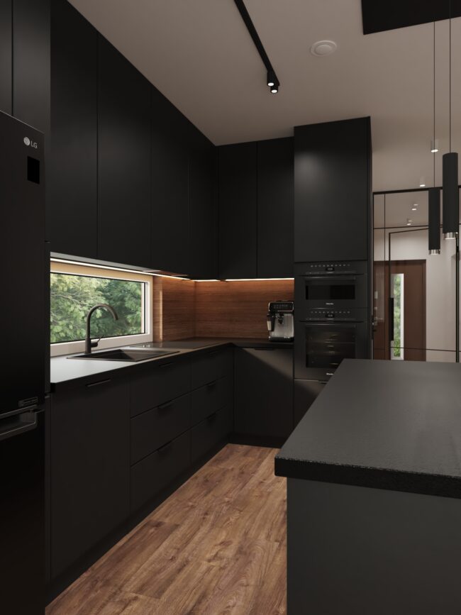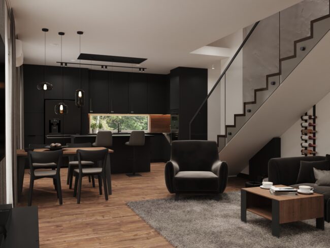 Dom minimalistyczny w ciemnych tonach - Projektowanie wnętrz Mkl Interiors