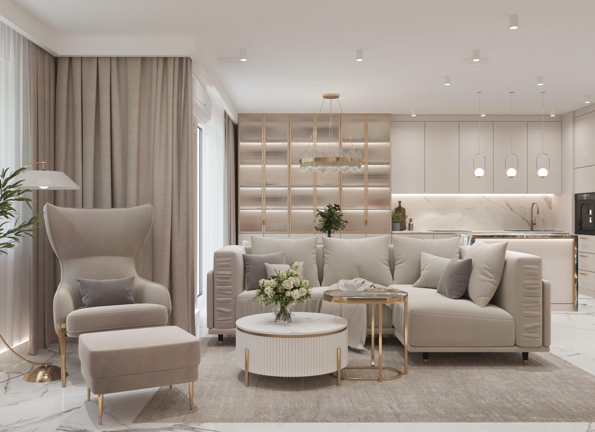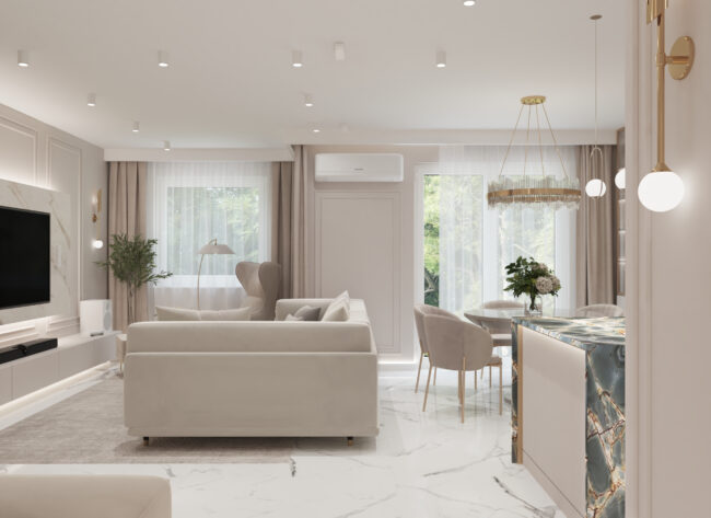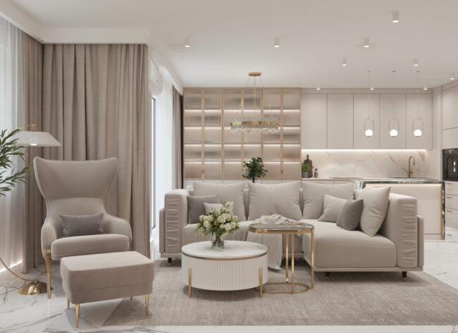 Nowoczesne mieszkanie w ciepłych beżach